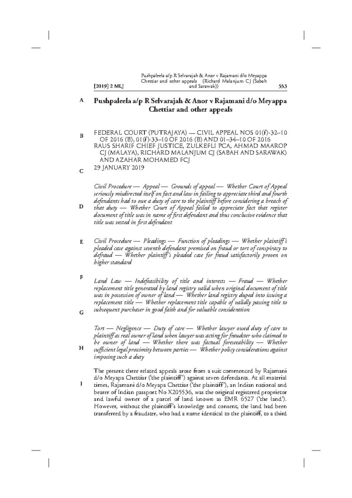 Pushpaleela Ap R Selvarajah Anor V Rajamani Do Meyappa Chettiar And Studocu